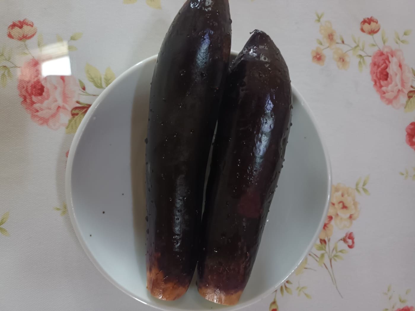 가지는 위쪽 꼭지를 깨끗이 잘라내세요. 손으로 톡 따거나, 칼로 잘라도 됩니다.